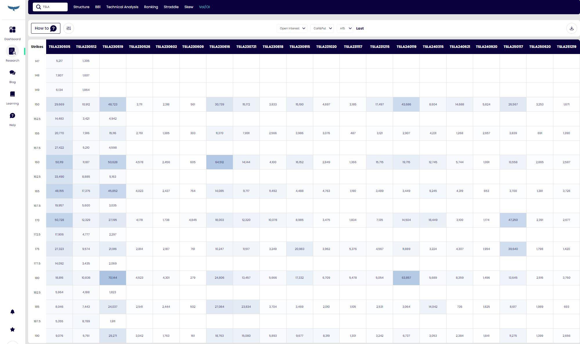 The Volume and Open Interest page (Vol/OI) is a very useful tool in analyzing where Open Interest is targeting, whether it is adding or decr